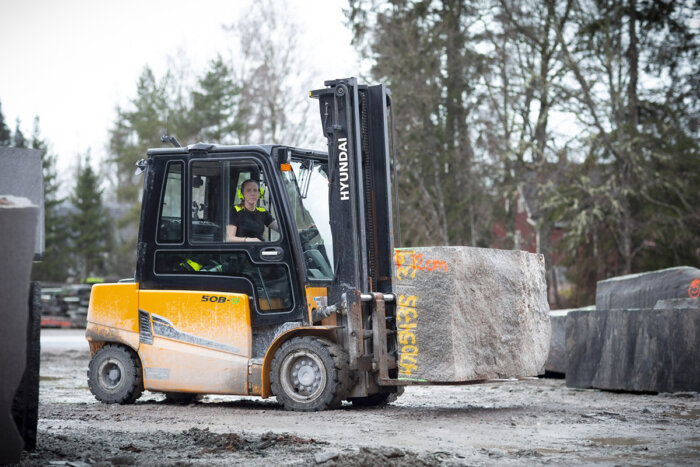 Som truckförare hos vår kund Naturstenskompaniet hanterar man bokstavligen tonvis av stenblock varje dag, men det är ingen match för Frida.