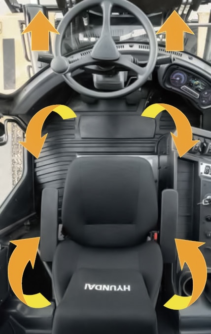 Hytten är designad för att ge föraren en bekväm miljö med låg ljudnivå som ökar produktiviteten och minskar trötthet, även under tuffa arbetsförhållanden.