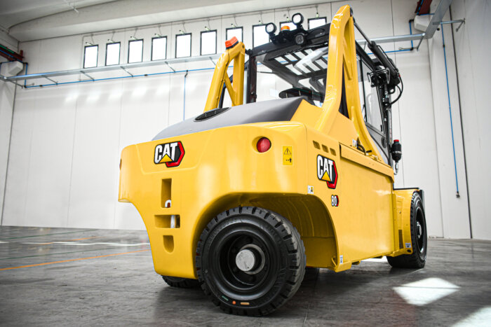 Bildtext: Den rymliga arbetsplatsen på Cat® EP60-120N(H) är gummiupphängd för att minimera vibrationer och buller. Intervallet 6,0 till 12,0 ton Cat® EP60-120N(H) har lanserats med fokus på ’förbättring som tjänar in sig själv’. Dess driftsekonomi, produktiva prestanda och förarergonomiska egenskaper betonas särskilt.