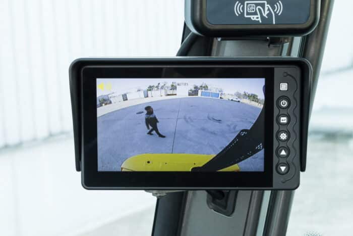 Back-kameran har en separat 7-tums display installerad på höger sida och erbjuder alltid sikt bakom maskinen för maximal säkerhet. Display är förberedd för att koppla in fler kameror om så önskas.