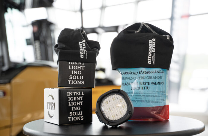 Just nu kan du beställa två lampor, Tyri 1010-9-60V 1800L till kampanjpriset, 2 800 kronor exklusive moms. Med på köpet följer då också två gåvor, en påse spolarvätska tillsammans med en skön höstmössa.