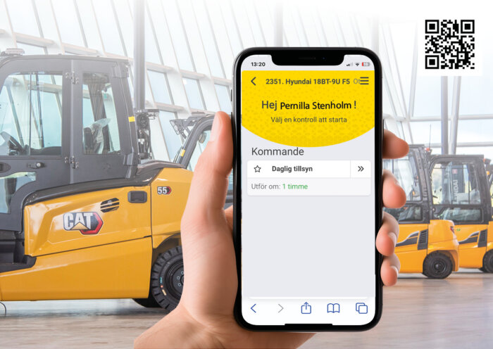 Med Ottosson DDTS-QR scannar truckföraren enkelt en QR-kod, som sitter i trucken, med sin telefon och kommer direkt till en digital daglig tillsyn.
