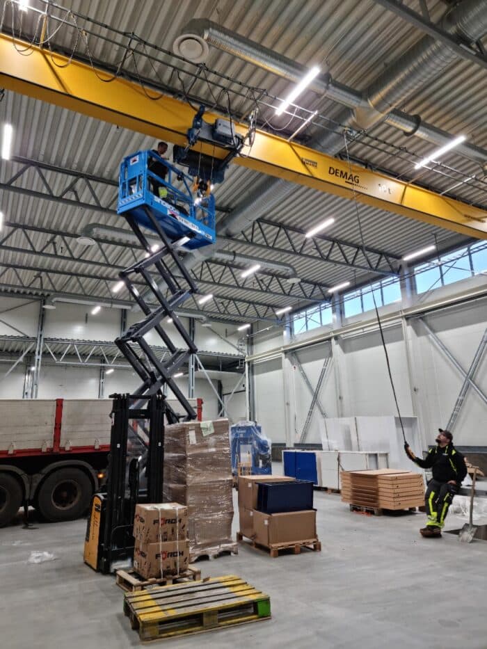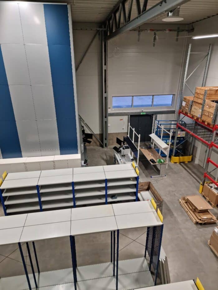 Reservdelslagret från ovan med den nya varuautomaten.