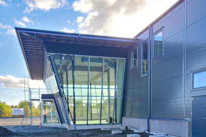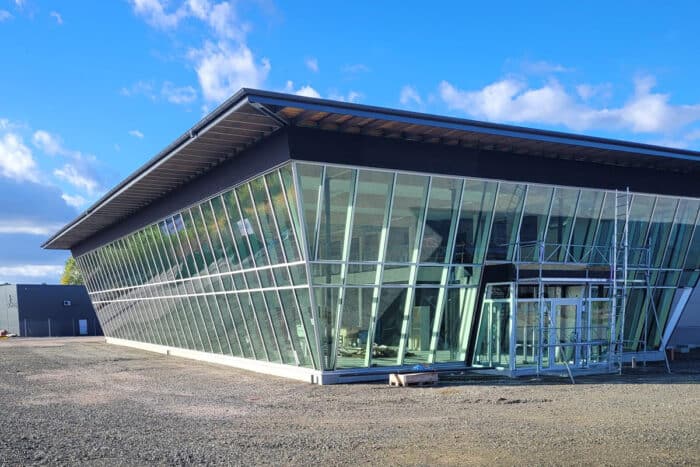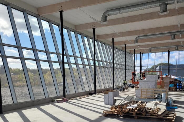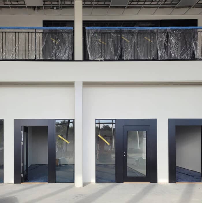 Nu har glaspartierna kommit upp i Showroomet ut mot väg E22, väggarna är målade och dörrar och fönster är monterade i kontorsdelen. Köket håller i skrivande stund på att monteras… Det händer mycket nu, in i det sista!