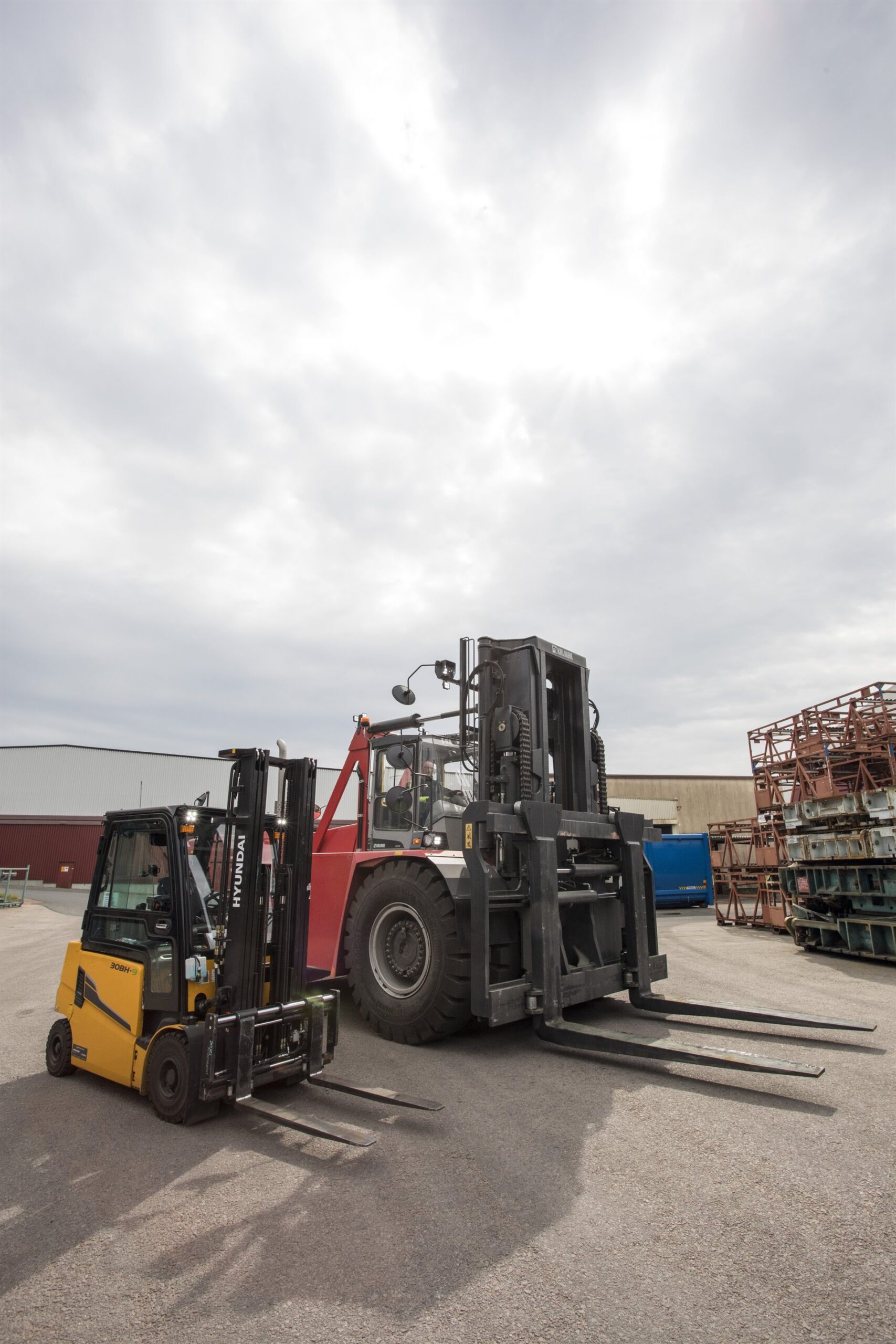 underhåll av ytterligare cirka 15 maskiner. Förutom fyra nya Hyundaitruckar har de även investerat i en 50-tons motviktstruck genom Ottosson Truck/Hyundai. Maskinerna används främst på logistik- och pressavdelningen, och truckparken består i dag av omkring 35 st truckar i olika klasser och viktspann.