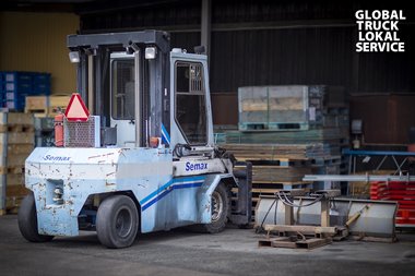 Linda berättar om när hon i sin tidiga karriär på företaget fick fråga hur man öppnade dörren på Semaxtrucken, inte visste hon då att en av Semaxtruckens specialiteter är gafflarna behöver vara helt nedsänkta för att dörren skulle kunna öppnas, inte helt enkelt att lista ut…