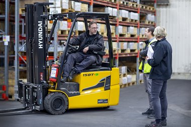Linda berättar vidare att Stans & Press har haft en lång relation med Ottosson Truck. Även om andra truckmärken har prövats genom åren så har valet hamnat på de kompakta truckarna från Hyundai. Kravspecifikationen för köp av ny truck denna gång var just att den skulle kunna manövreras och köras i de smala gångarna med pallställ och även kunna lyft högt och stabilt. Hyundaitruckens dubbla drivmotorer ger den minimala svängradie och smidighet som Stans & Press efterfrågade.