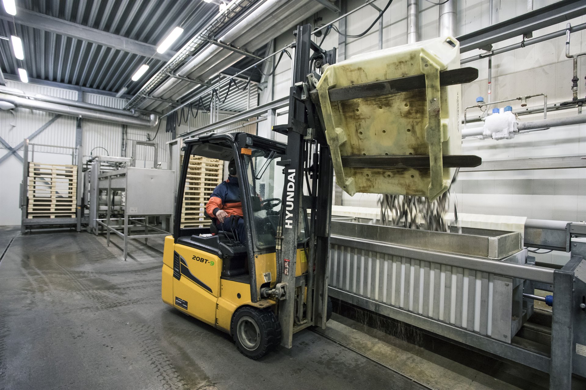 Dessutom finns en truck helt specialutformad för att kunna hantera klimatet inne i Skillinge Fisk-Impex fryshus.