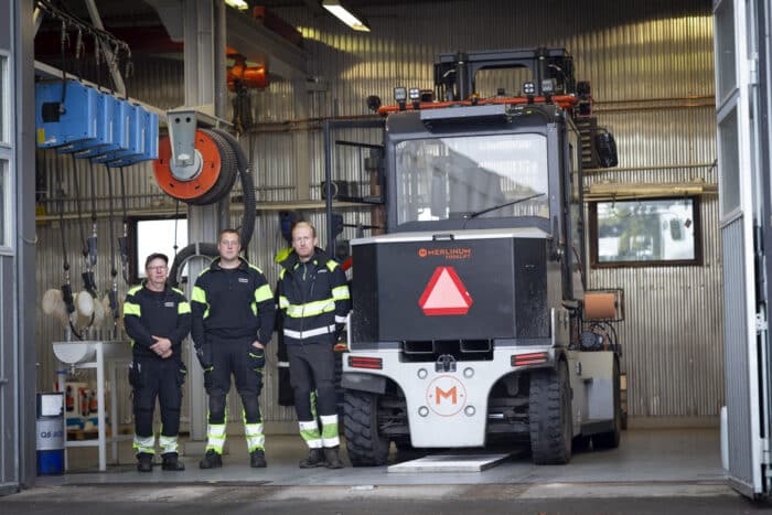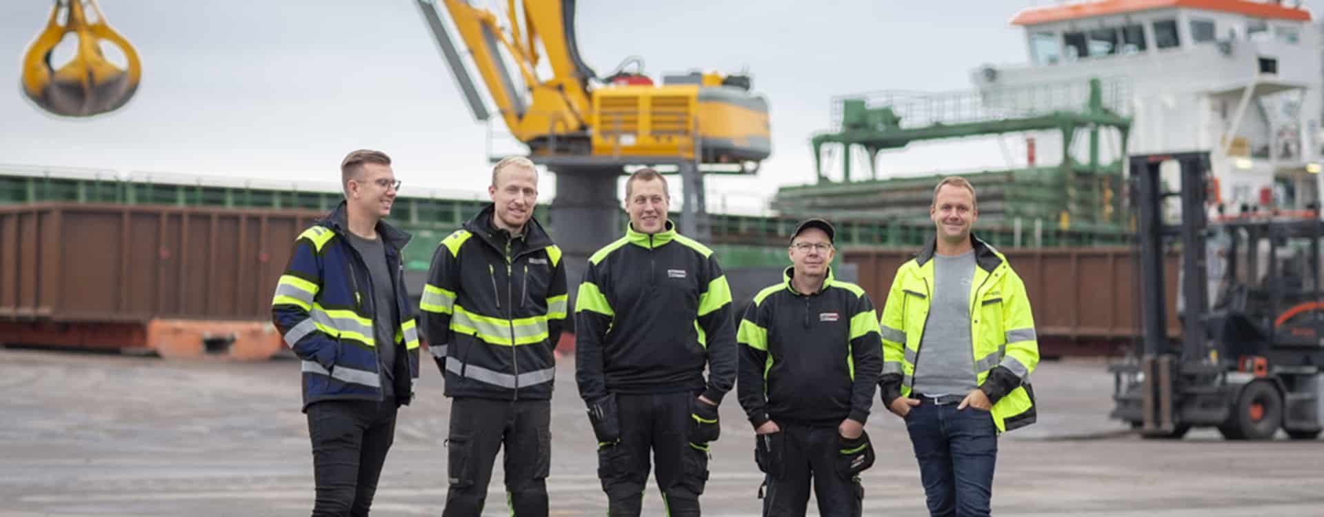 Bild: Joakim Nilsson och Rikard Johansson, Sölvesborgs hamn, Johan Edvarsson och Mats Bengtsson, servicetekniker Ottosson Truck samt Nicklas Joelsson Björkman, säljare Ottosson Truck.
